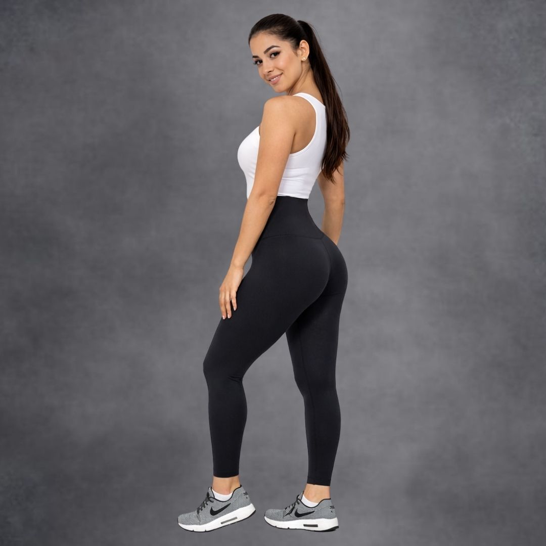 Su estructura de una sola pieza integra una faja de compresión alta con broches anatómicos hasta debajo del busto, proporcionando soporte, definición de cintura y un efecto moldeador inmediato.
